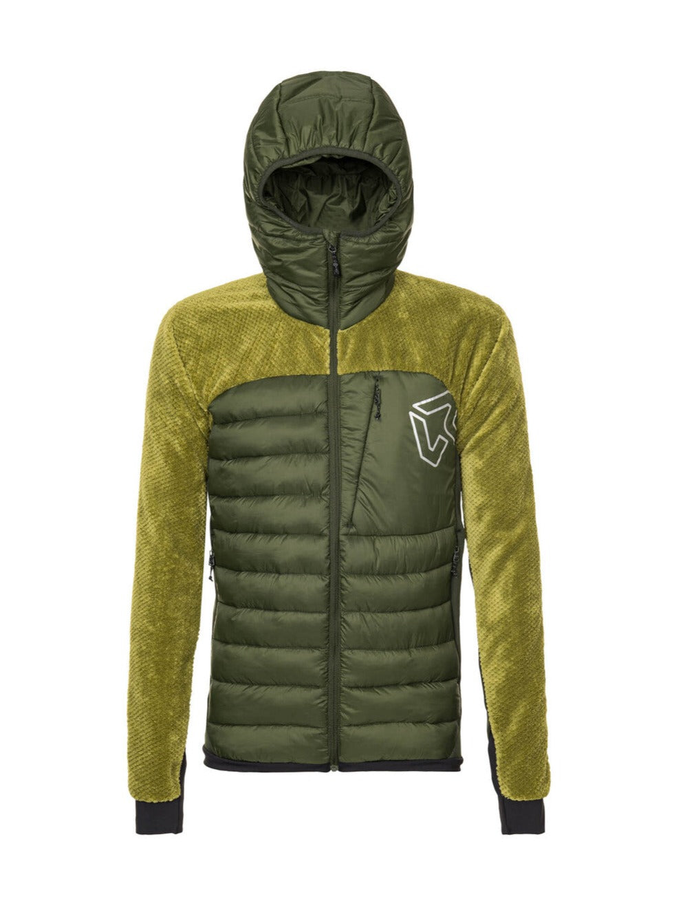 L'imbottitura  Synt Down , posizionata su torace e sul retro, rende Wild Cat Hybrid Jkt  più confortevole, calda e leggera rispetto alla piuma d'oca. Il tessuto esterno è in nylon 380T mentre un tessuto più elastico, resistente alle abrasioni e totalmente ecologico è stato posizionato nelle fasce laterali assecondando l'esigenza di maggiore traspirabilità e libertà di movimento richiesta per le attività all'aperto. La parte superiore delle maniche è stata realizzata con tessuto Coral Fleece, pile tecnico più caldo e traspirante che assicura calore e morbidezza.